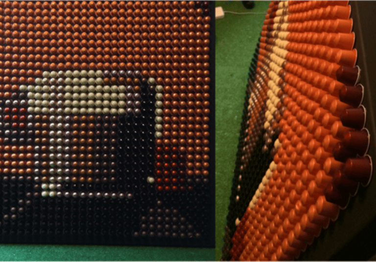 Instalación de las cápsulas de Nespresso como cuadros de arte.